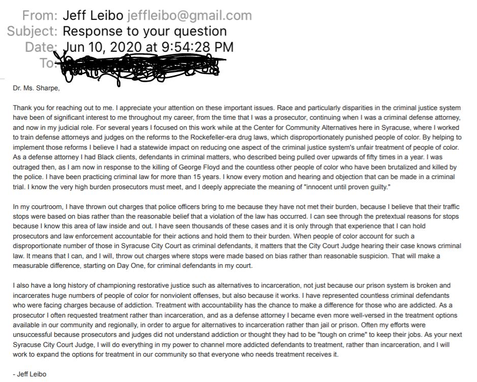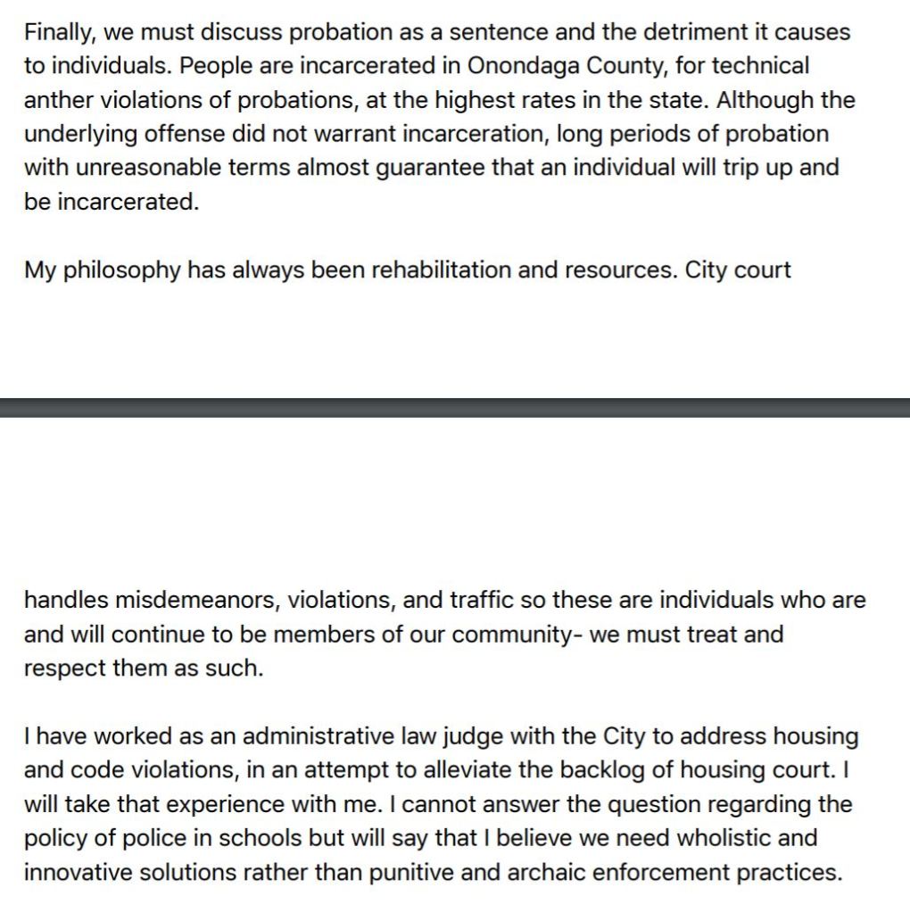 I’m a voter in Onondaga County and I live in the city of Syracuse. I am trying to learn more about candidates up for election this November, and in particular about the stances they hold with regard to law enforcement and the role of the criminal justice system in our diverse city.