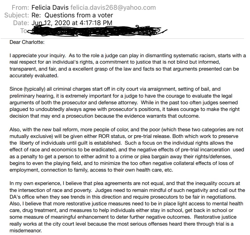 While I still feel I have a lot to learn about what average citizens can do to hold elected judges accountable to the action items in that last post, I want to turn now to the city court judge candidates who will be on this year’s democratic primary ballot and where they stand related to issues of policing, racism woven into the justice system, and their own personal agendas for using their power to address these problems from the bench.